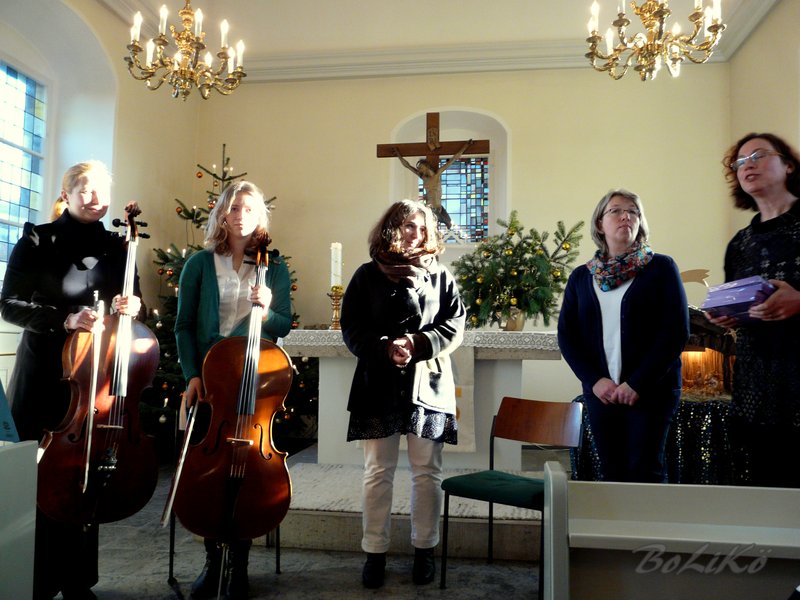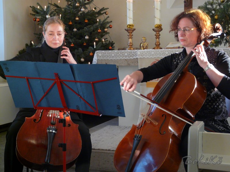 Elena Schrader, Christine und Johanne Böhm spielten – teilweise unterstützt durch Heike Heinemann an der Orgel – verschiedene Stücke auf dem Cello. Christine Böhm, Heike Heinemann und Birte Taake erfreuten die Besucher außerdem mit einer Gesangsdarbietung.