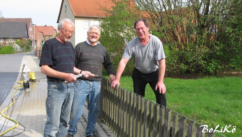 Auch wenn auf dem Bild nur drei zu sehen sind: es waren vier fleißige "Kirchwerker", die sich um den maroden Kirchzaun in Liedingen gekümmert haben. Auf dem Foto sind von links nach rechts Peter Reiß, "Peter" Streich und Detlev Gebhardt zusehen, der vierte im Bunde war Heiko Spanier.